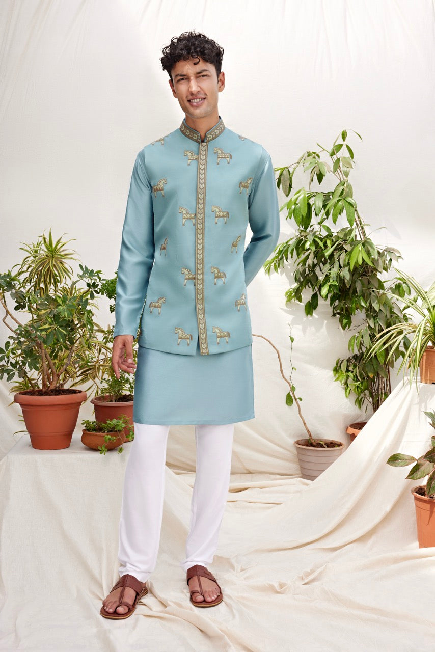 Midnight Radiance Hand-Embellished Bandhgala Set