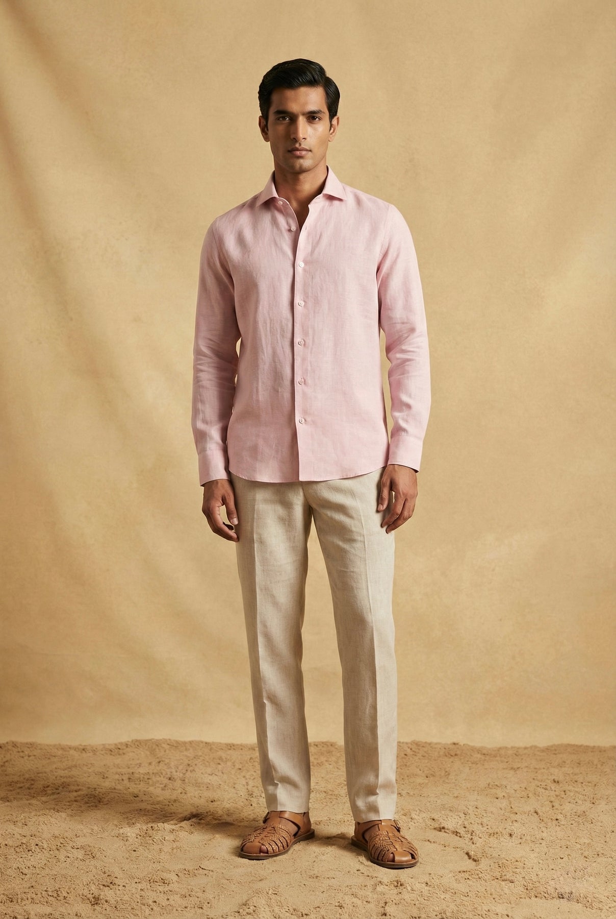 Refined, minimal, and effortlessly elegant — this Blush Pink Pure Linen Shirt is tailored for modern men who appreciate timeless style with breathable comfort. Crafted from 100% pure linen, it offers a naturally airy feel, making it ideal for warm-weather dressing and relaxed luxury occasions.