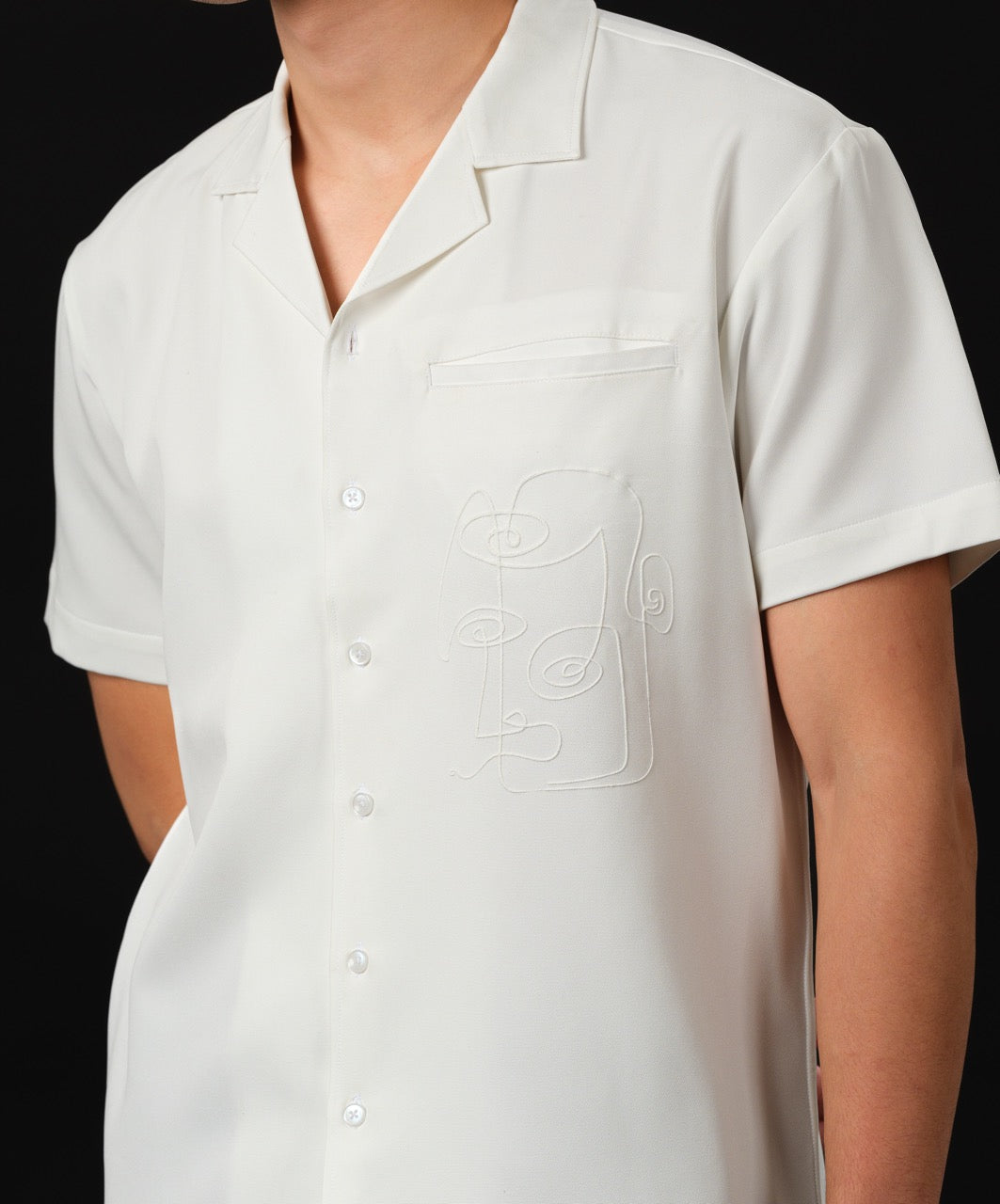 Faces Unfold is a conversation starter disguised as a shirt. With its abstract puff-printed face etched over premium Japanese rayon, this piece is where art meets effortless wearability. It captures mood, movement, and mystery — all on a single canvas.