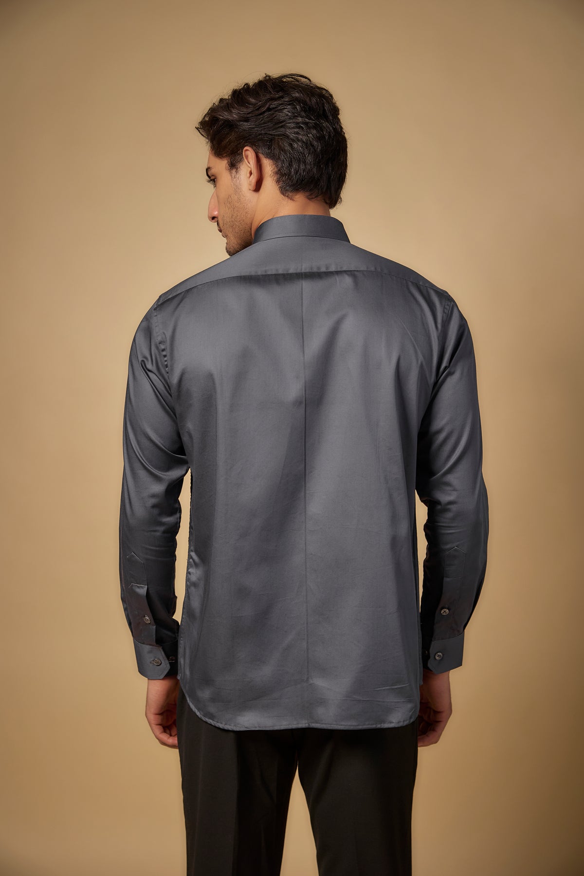Featuring a grey shirt in pure satin cotton base with cutdana hand embroidery. Style it with pants and shoes for a festive evening, intimate celebration or elevated day occasion.