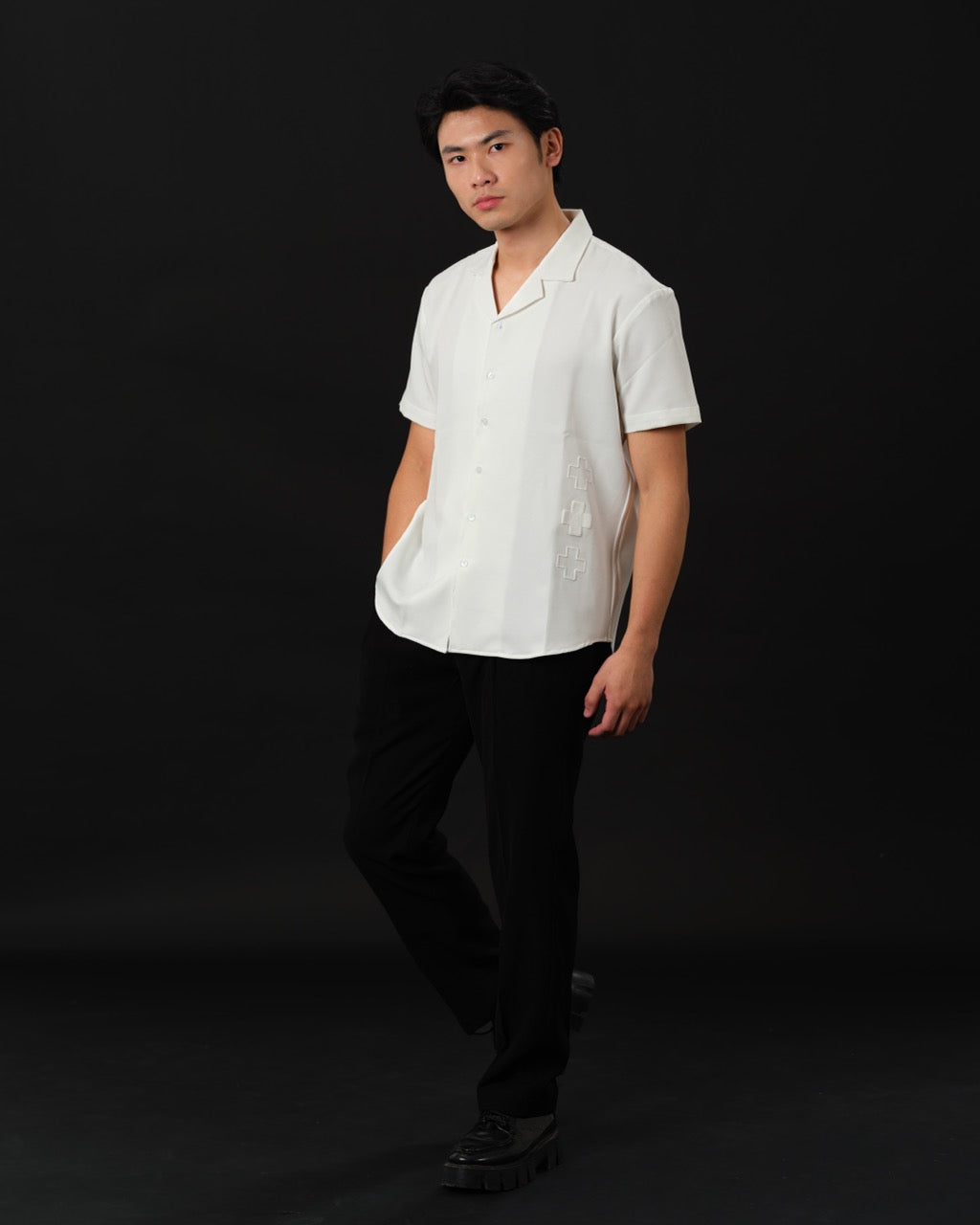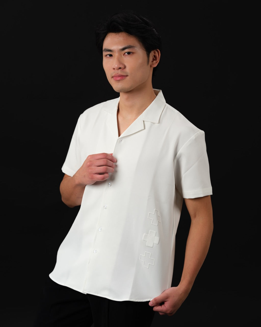 Positive Form is minimalism made meaningful. Designed with tonal puff-printed plus signs, this shirt is a modern reminder to stay grounded, connected, and optimistic — without saying a word.