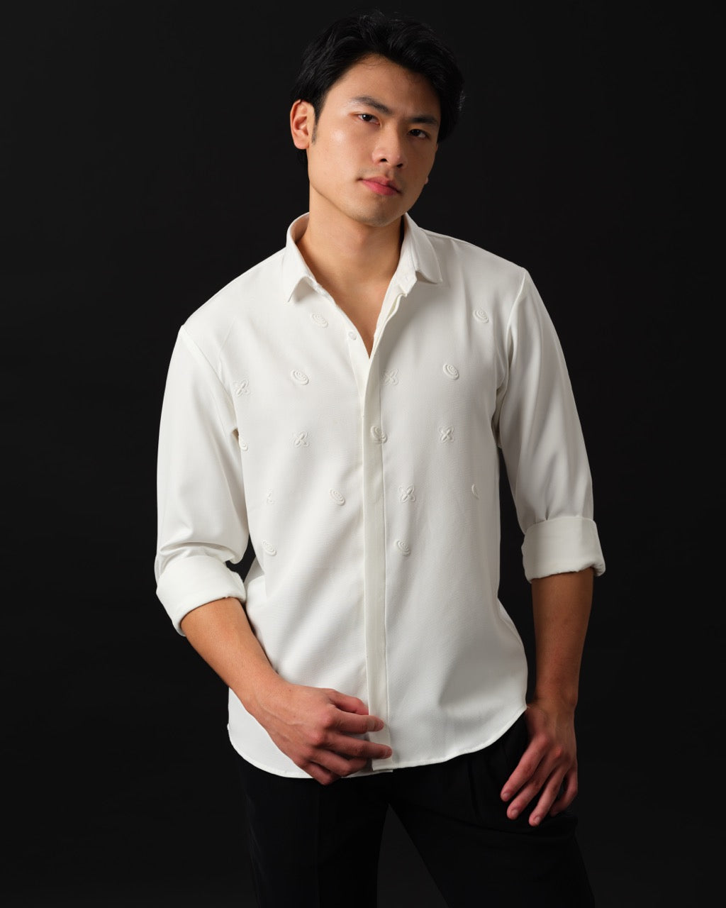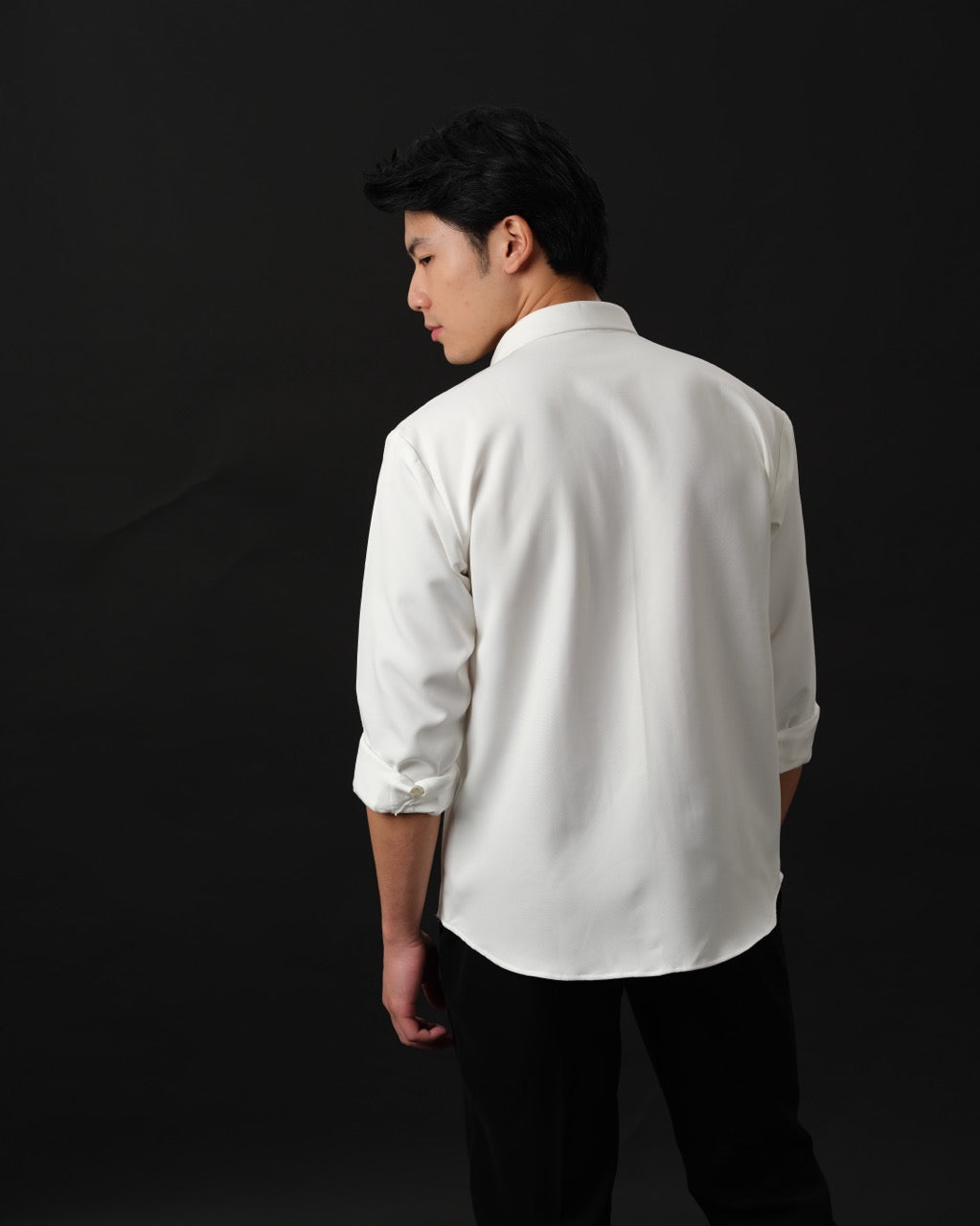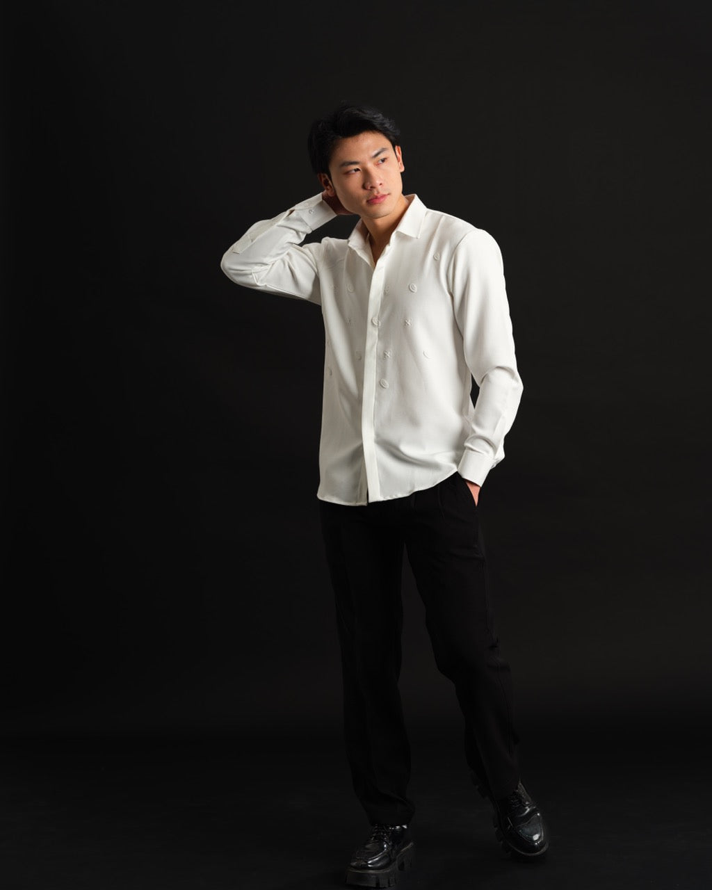Crafted from luxurious Japanese rayon, the shirt drapes with an elevated fluidity, designed for the man who blends structure with softness. Whether you pick classic black for power or pristine white for purity, this piece makes a strong statement in silence.